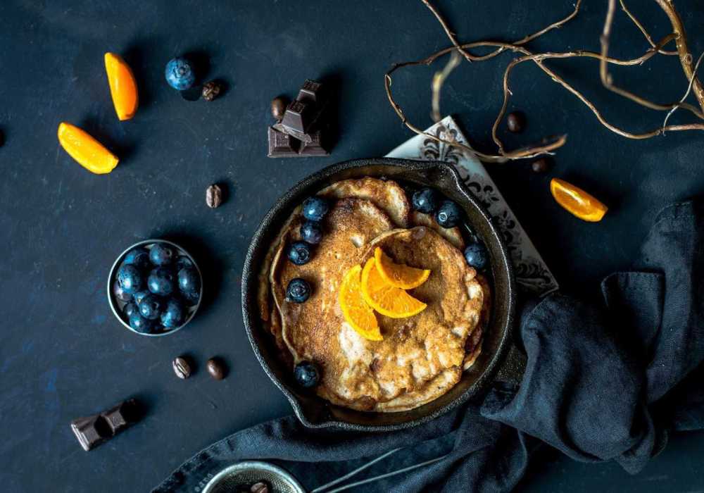 يتكرر معنا دائما ذلك المشهد كل صباح ونحن مسرعين، حاملين القهوة في يدٍ وشريحة من الخبز المحمَّص في اليد الأخرى، ولكن عطلة نهاية الأسبوع هي موعدنا مع إفطار بطيء نسبيا. إنه أمر متأخر، ويمتد أحيانًا إلى الغداء، ويتضمن الكثير من القراءة والأحاديث بين أطباق الفواكه والبيض المسلوق والعسل والخبز المحمَّص. أما أحد الأشياء المفضلة لدينا التي نحب تقديمها عند زيارة الأصدقاء فهي فطائر الحنطة السوداء والتوت.